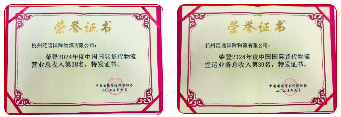 泛远国际揽获2024年度中国国际货代物流行业排名两项荣誉